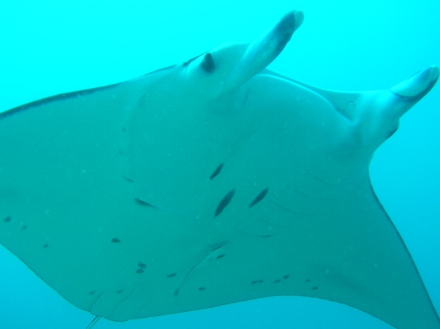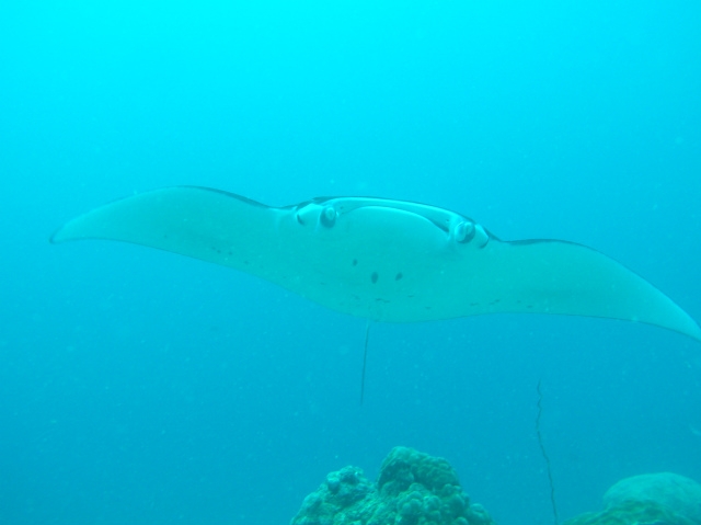 サイパンにはたくさんいましたが、パラオでは珍しいマダラトビエイ。