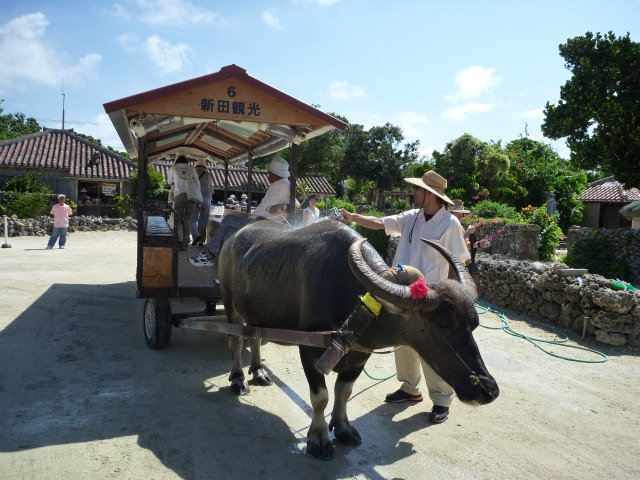 石垣島以外の離島のおすすめは、まずは竹富島です。昔ながらの沖縄の町並みが保存されている貴重な島です。石垣港離島ターミナルから船で約10分。竹富港から集落までは車で約5分くらいです。水牛車に乗るなら送迎バスにのれば、集落まで連れて行ってくれます。